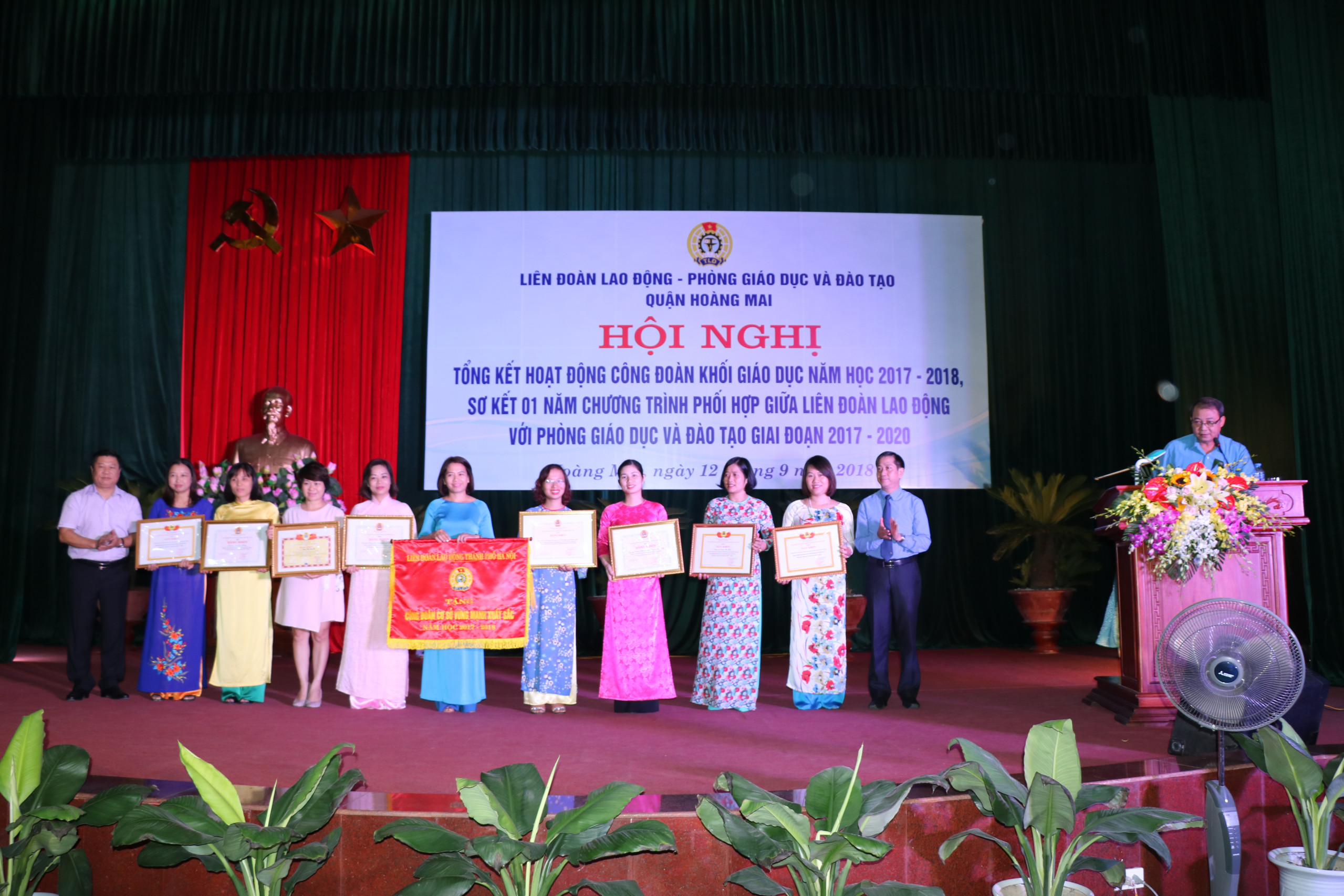 Báo cáo tại hội nghị đồng chí Nguyễn Thị Thuý – Phó Chủ tịch LĐLĐ Quận đã khẳng định trong năm học 2017-2018 bám sát sự lãnh đạo, chỉ đạo của Quận ủy, HĐND, UBND Quận, chương trình phối hợp công tác giữa LĐLĐ Thành phố và Sở GD&ĐT Hà Nội; LĐLĐ và Phòng GD&ĐT Quận đã xây dựng và triển khai Chương trình phối hợp công tác số 275/CTPH ngày 17/11/2017 về việc phối hợp giai đoạn 2017-2020, Kế hoạch liên tịch về việc phối hợp năm học 2017-2018; và các kế hoạch về việc tổ chức “Ngày hội Văn hoá – Thể thao”, triển khai giải thưởng “Nhà giáo Hoàng Mai tâm huyết, sáng tạo” tới 100% các nhà trường.
